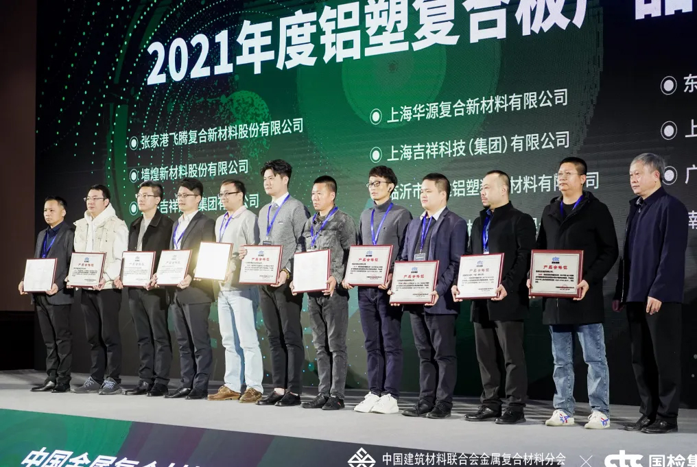 會上,對2021年度行業(yè)優(yōu)秀的產(chǎn)品與企業(yè)進行了表彰頒獎——雅泰 YARET 牌鋁塑復(fù)合板,于2018年至2021年期間經(jīng)中國建材檢驗認(rèn)證集團股份有限公司抽樣全項檢測,產(chǎn)品質(zhì)量符合中華人民共和國國家標(biāo)準(zhǔn)(GB/T 17748-2016),榮獲2021年度CTC認(rèn)證產(chǎn)品合格證。