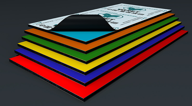 鋁塑板上下層為高強度涂裝鋁箔,中間層為無毒防火高密度聚乙烯( PE )芯板,粘結層為高分子粘結膜。室外用鋁塑板,上層鋁箔涂覆氟碳樹脂涂層;室內用鋁塑板,可采用聚酯樹脂涂層和丙烯酸樹脂涂層,亦能滿足其使用要求。