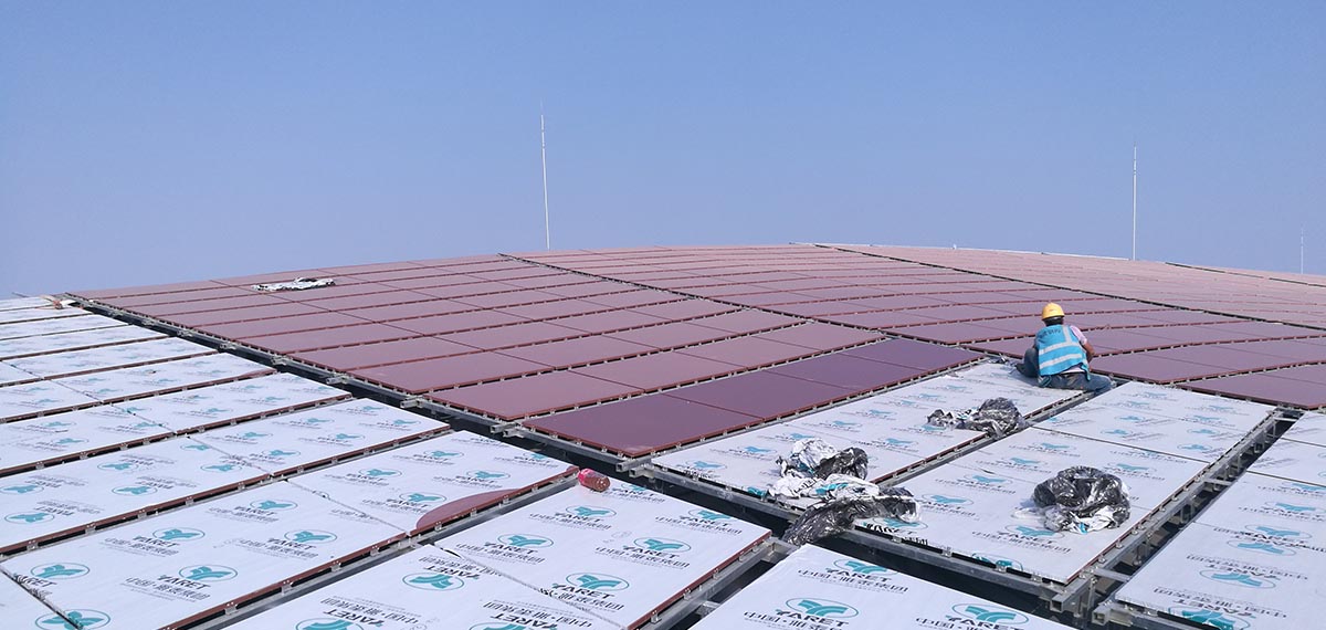 5)屋頂面積:18萬平方米,8根C形柱作支撐,相當(dāng)于25個(gè)標(biāo)準(zhǔn)足球場;